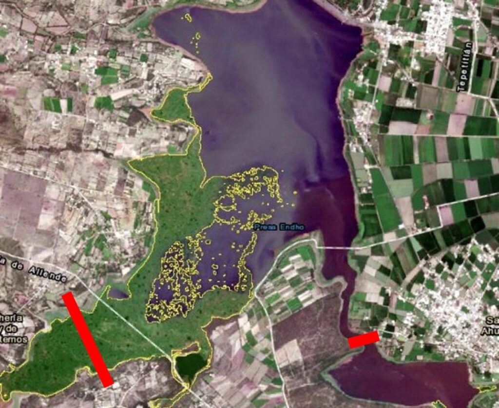 Aunque la Semarnat no ha informado el avance de extracción, sí compartió imágenes satelitales de la presa en dónde se puede observar que el progreso es considerable: se nota que más del 50 por ciento de la presa Endhó está libre en este momento.