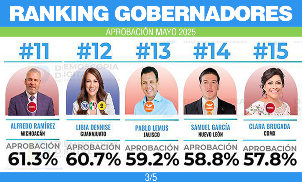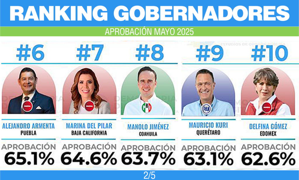 Ranking de gobernadores mejor evaluados en mayo 2025