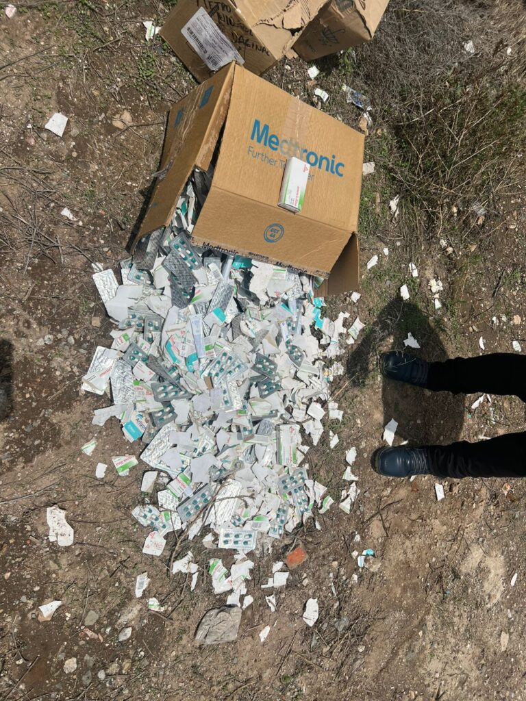 La Secretaría de Salud de Hidalgo investiga el hallazgo de 10 cajas de medicamentos caducos que fueron abandonadas en un terreno baldío de la colonia La Loma, en la capital del estado.
