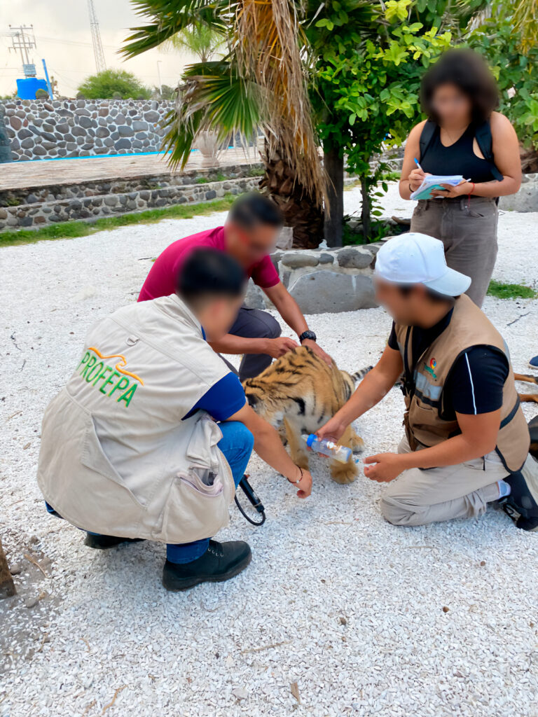 En Hidalgo, personal de la Procuraduría Federal de Protección Animal (Profepa), aseguró un tigre de bengala, un hipopótamo y un faisán dorado que se encontraban en un establecimiento sin autorización para operar como PIMVS ni contar con un plan de manejo para su cuidado.