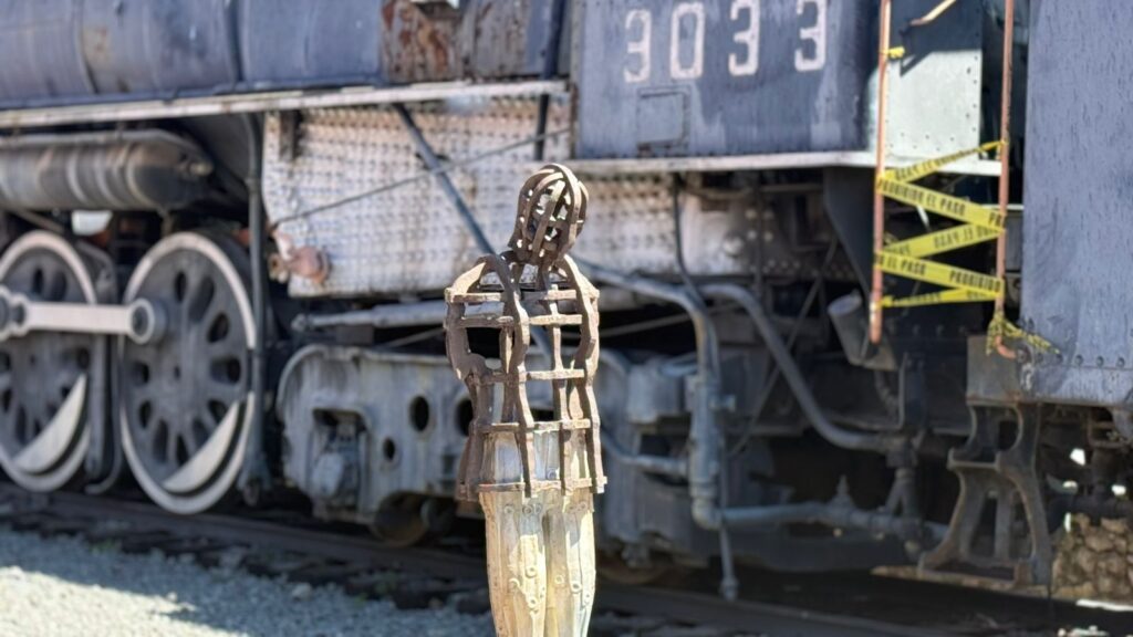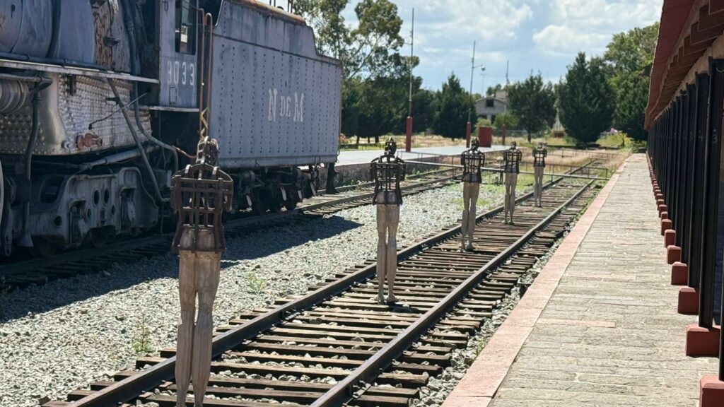 La obra no solo evoca el tránsito físico de los trenes, sino el desplazamiento emocional de generaciones cuyas vidas quedaron marcadas por el progreso extractivo. En ese contexto, las figuras esculpidas revelan las huellas del despojo y la espera heredada, invitando al visitante a recorrer un pasaje compartido, activando las ausencias como parte esencial del arte.