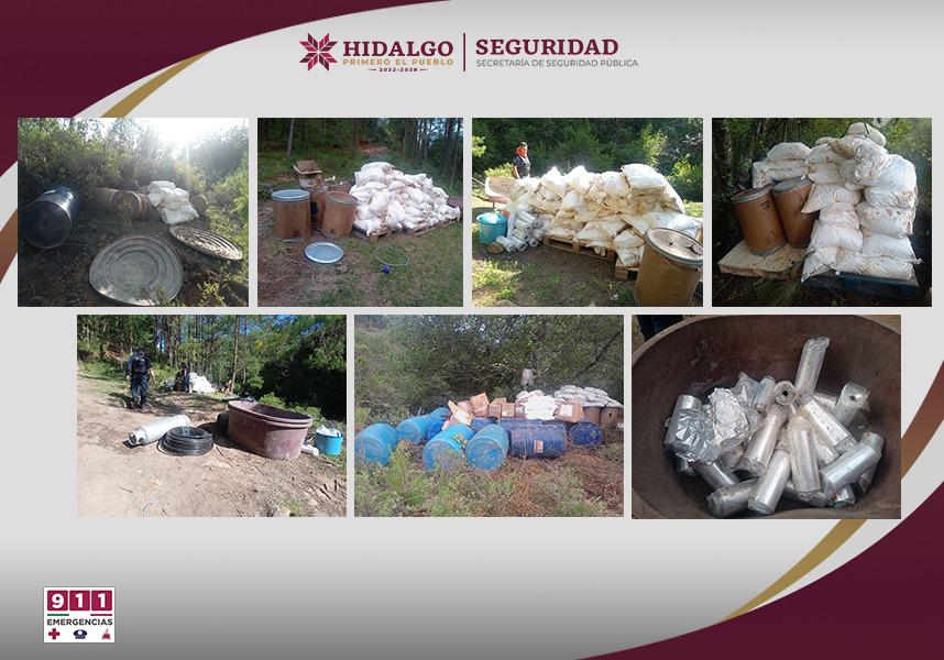 La Secretaría de Seguridad Pública de Hidalgo (SSPH) llevó a cabo una operación que resultó en la incautación de precursores químicos destinados a la fabricación de droga sintética en el municipio de Acaxochitlán.
