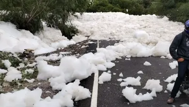 Espuma tóxica invade carretera en Valle del Mezquital, Hidalgo