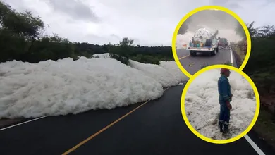 Espuma tóxica cubre carretera en Alfajayucan; tardan 36 horas en iniciar limpieza