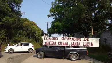 Bloquean transportistas de Calnali carretera; dicen que está intransitable