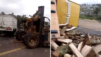 Accidente en la carretera México-Tuxpan: vuelca camioneta que transportaba madera