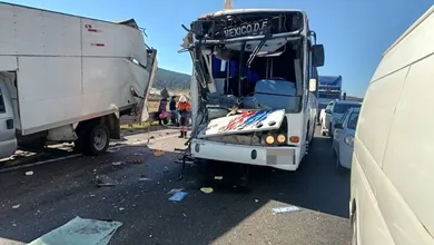 Carretera México-Tuxpan: choque entre autobús y camioneta deja 4 lesionados