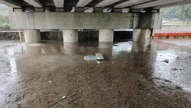 Patrulla de Hidalgo queda sumergida por inundación en Tlaxcala