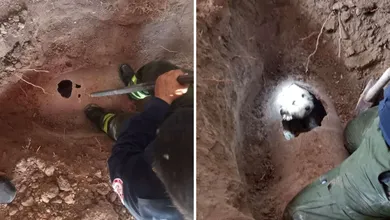 Rescatan a perrito atorado en una tubería de agua potable en Ixmiquilpan