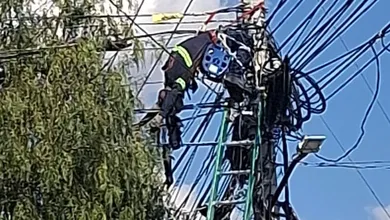 Muere trabajador tras recibir descarga eléctrica: su cuerpo quedó suspendido en poste de la México-Pachuca