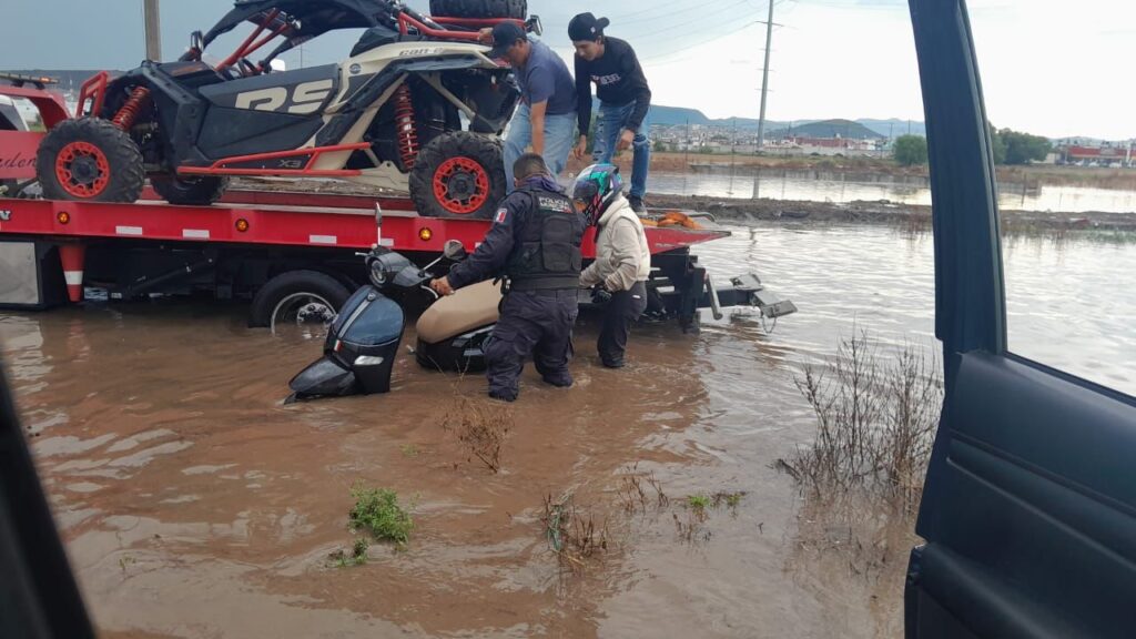 La lluvia también causó caos vial en distintas zonas. La carretera federal Pachuca–Ciudad Sahagún presentó anegamientos severos desde el acceso a Paseos de Chavarría hasta la colonia Las Águilas, dificultando la circulación.
