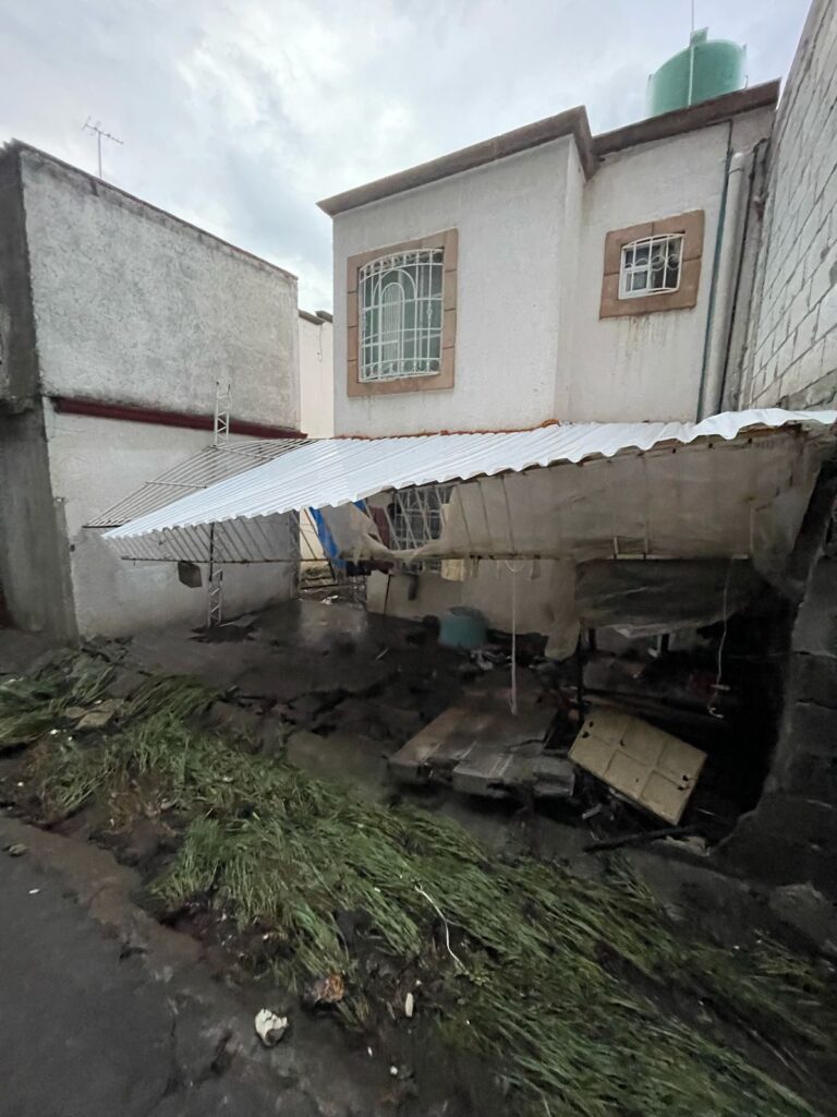 “La barda no estaba cimentada, solo estaba sobrepuesta. El peso del agua la venció y todo se vino hacia mi casa. La planta baja quedó completamente destruida, se dañaron los muebles y todas nuestras pertenencias. Además, mis perros quedaron aplastados y murieron”, relató el afectado, quien también denunció que un tinaco fue arrastrado por la corriente y terminó impactando su automóvil.